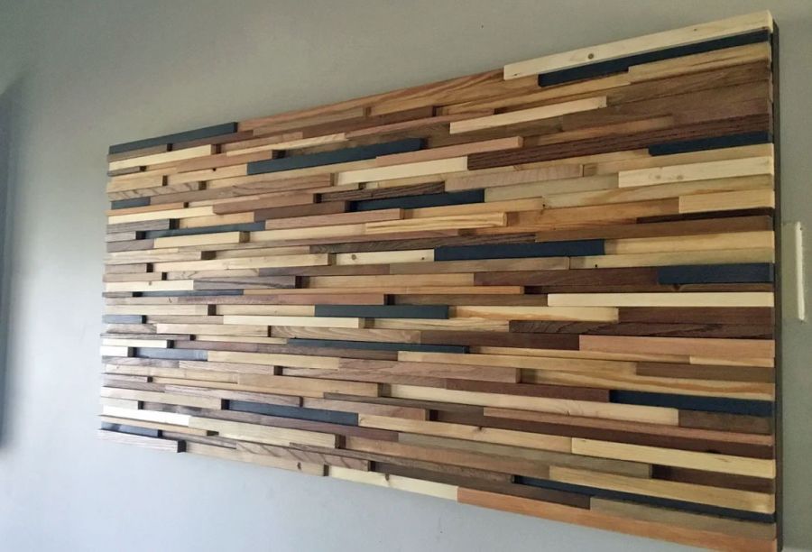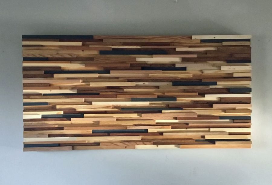 This wood tone sculpture is made from a select variety of reclaimed and up cycled woods and stains. This piece has a nice balance of texture and wood tone color throughout. If this design interest you or you would like something similar, customization of size ,color, and design are welcome, feel free to contact.
